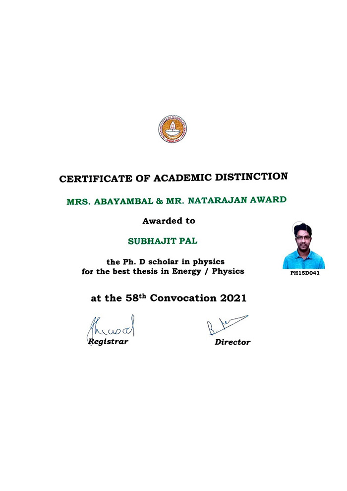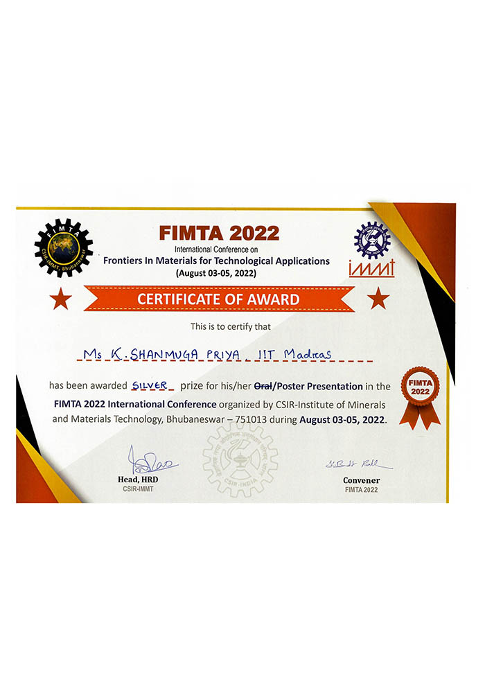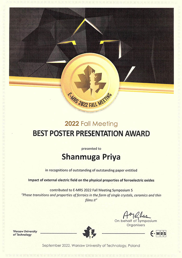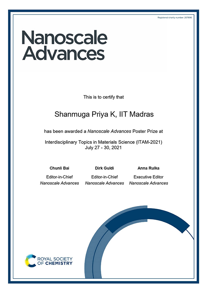 Award at International Conference on Nano-structure material and Devices (ICNSMD) held during July, 2018 at University of Delhi, Delhi.