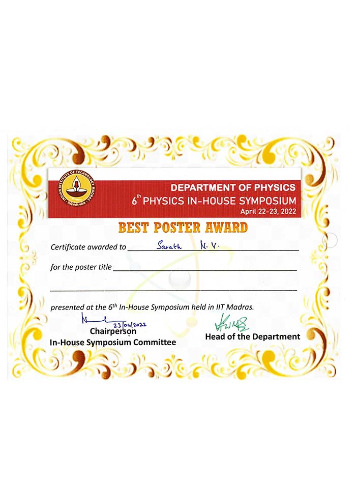 Physics In-house Symposium held during April, 2022 at Indian Institute of Technology, Madras.